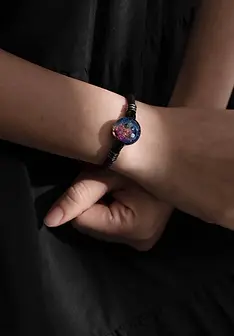 Captures the essence of the cosmos by fusing ashes within glass, creating a starry backdrop. Accented with opals and sterling silver wisps, each piece reflects a unique miniature universe.